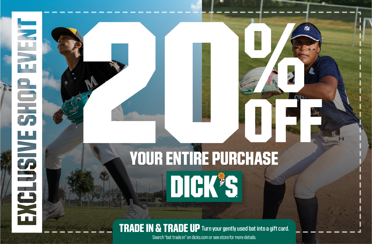 Take advantage of our popular LMLL/DICKS 20% OFF weekend Feb 27 - March 2nd! Open to all. Click HERE for coupon (can use all you want!) and see below.