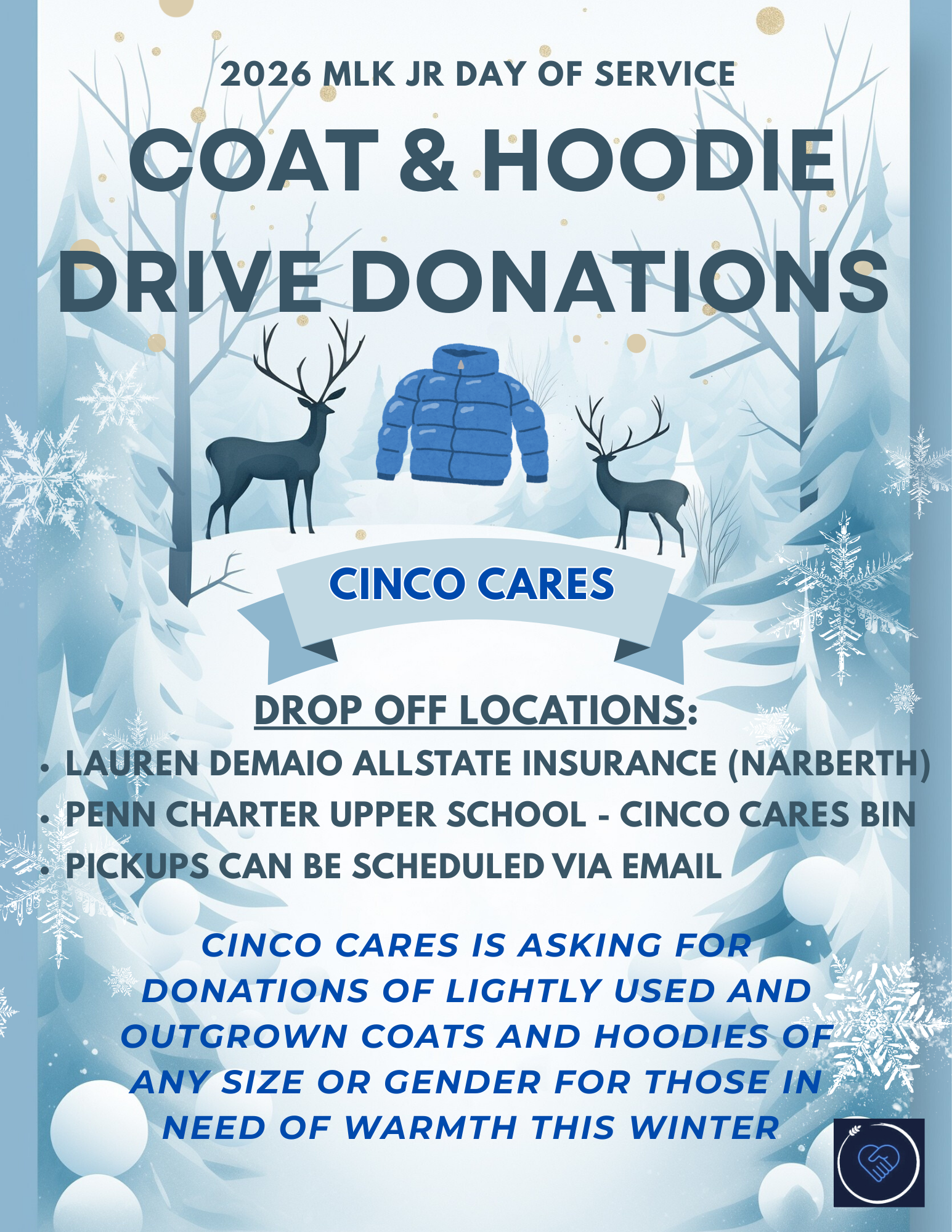 Cinco Cares Coat Drive! Harriton & lm pitcher/catcher clinics